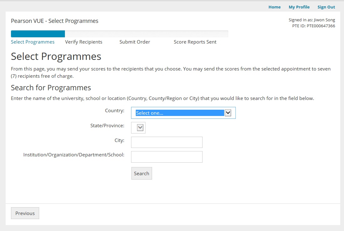 "Search for Programmes" 부분에 검색 옵션을 선택 및 입력한 후 "Search" 버튼을 클릭하세요.