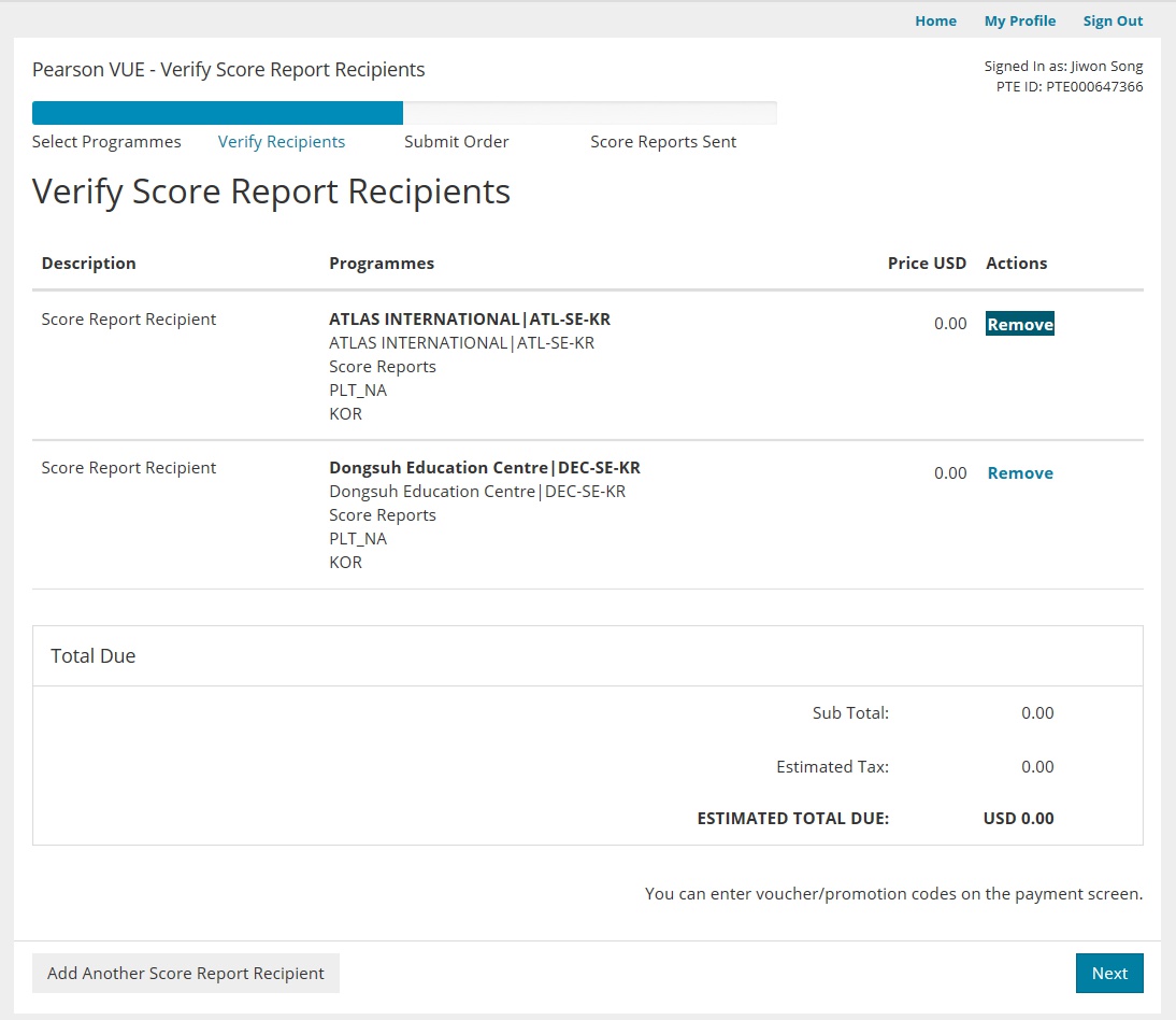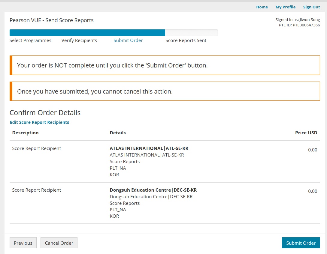 최대 7개 기관에 무료로 전송할 수 있습니다.